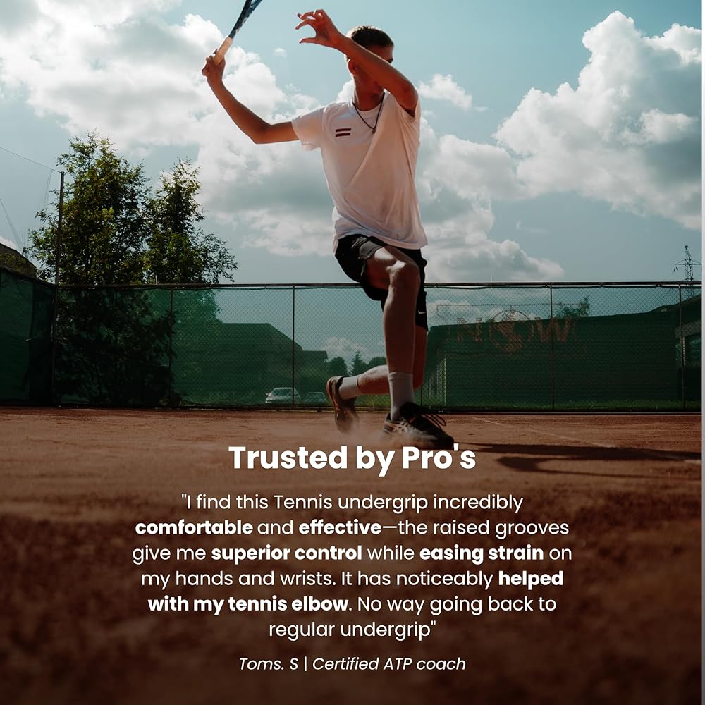💦 SWEAT-PROOF PERFORMANCE – Designed with an octopus-style bump pattern, our undergrip channels sweat away from your hand — keeping your tennis grip dry and secure, even during long matches under pressure.