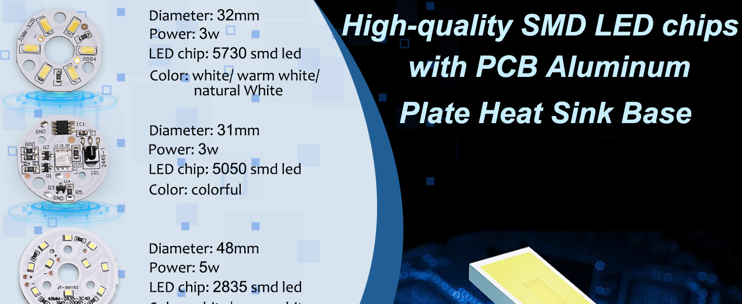 Versatile Applications: Suitable for all kinds of DIY lighting projects. Use this LED chip to create DIY fixtures or replace identical failed chips, easily repairing various lights including floodlights, cabinet lights, vanity lights, emergency lights, advertising light boxes, and automotive interior decorative lights.