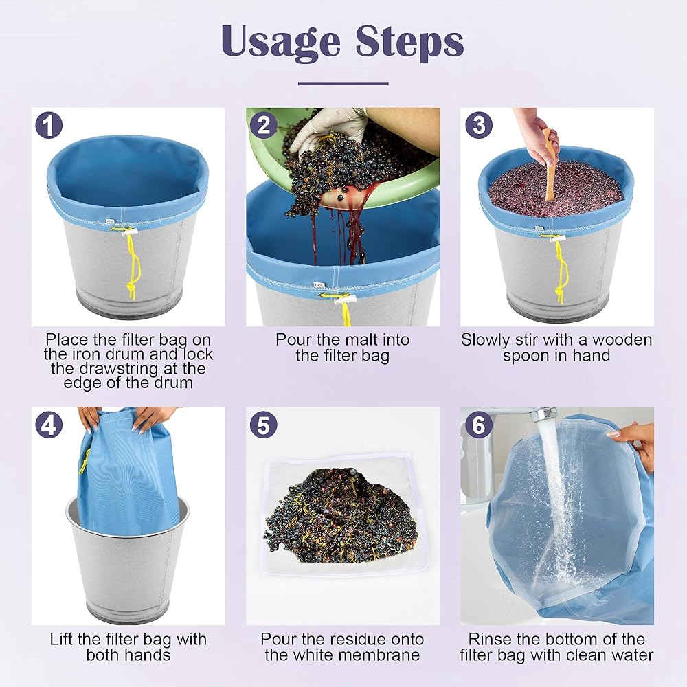 Versatile Applications: Our 5-gallon mesh filter bags are perfect for handling all kinds of filtering jobs, like juicing fruits, and making soy products.