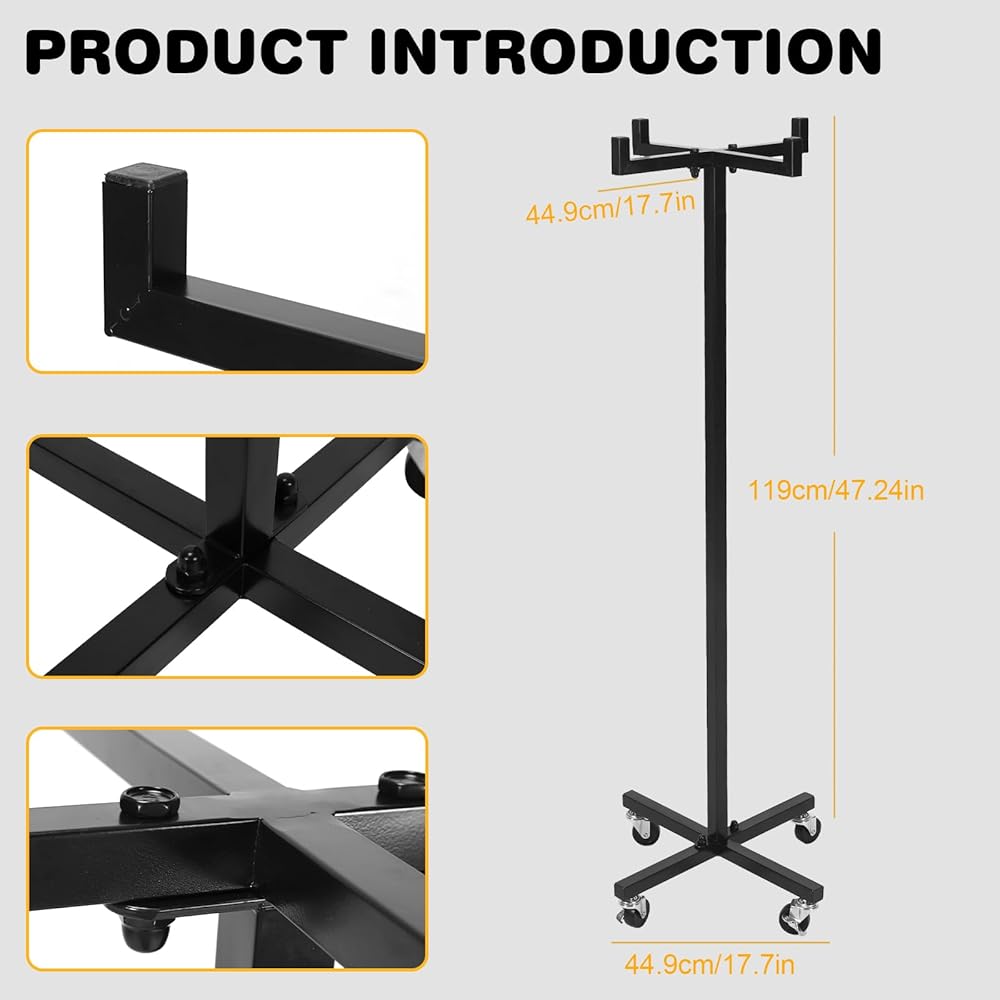 360° Universal Wheels: Equipped with four versatile wheels, the metal mobile jump rope tree rack moves smoothly in any direction. The wheels also feature a secure lock mechanism to ensure stable storage wherever you position your rack.