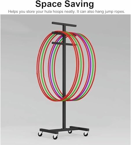 Versatile Storage Solution: This 43-inch tall rack is designed for efficient storage of multiple hula hoops and comes with hooks for jump ropes, making it easy to organize and access your equipment anywhere, perfect for gyms, schools, and home use.