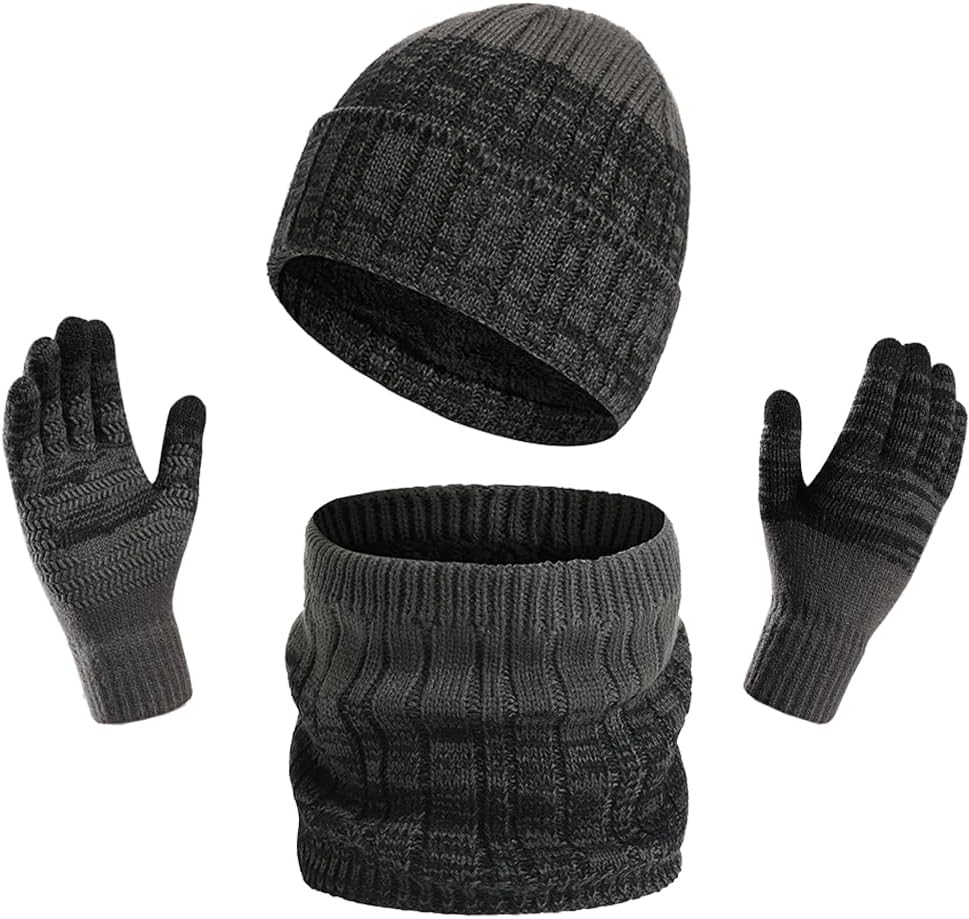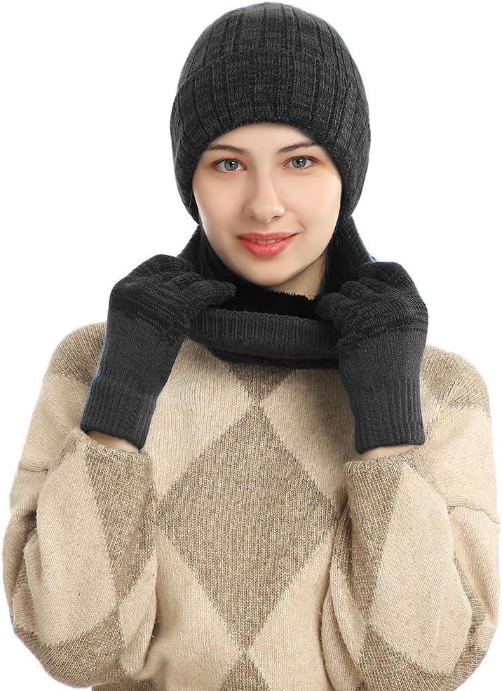 The set of beanie and scarf completely covers your head and your neck and warm enough for outside or leave it on inside. The gloves equipped with touch screen function, allow your fingers to work on touchscreen devices easily