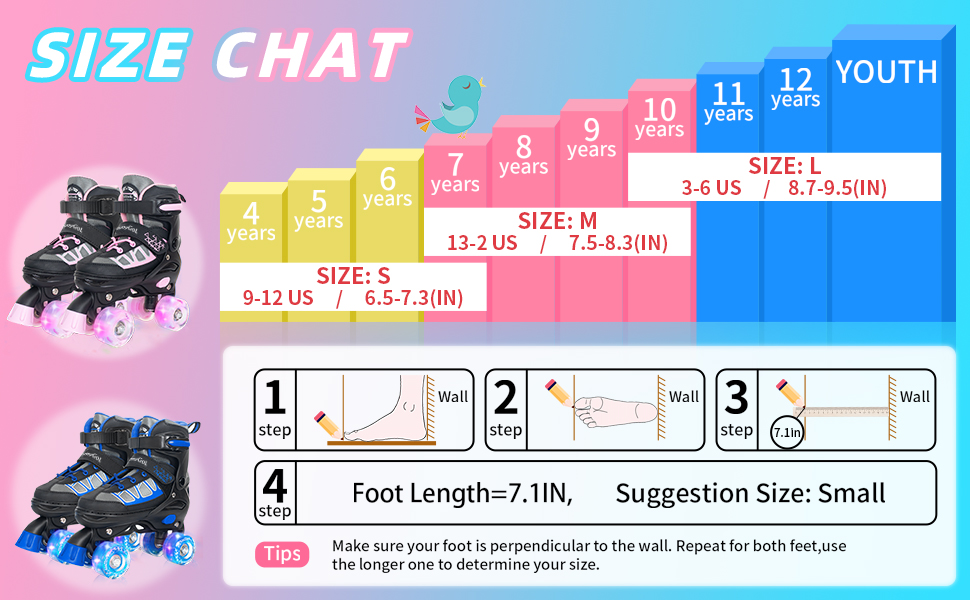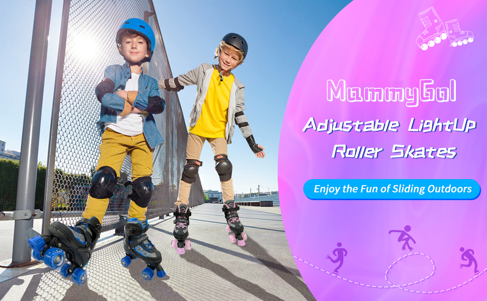 4 Size Adjustable Roller Skates: MammyGol roller skates can be easily adjusted to 4 different sizes by adjusting the button. The adjustable size means you don't have to buy new roller skates every few months, making them perfect for kids.