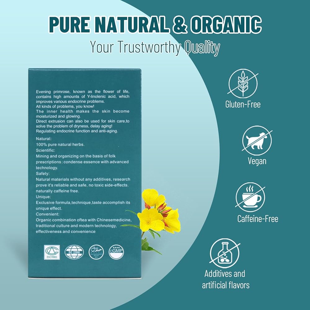 PURE NATURE, ORGANIC & CAFFEINE-FREE - Indulge in a moment of pure tranquility without any caffeine jitters, each tea bag is filled with only certified organic evening primrose leaves and flowers, it's completely free from artificial flavors, colors, preservatives, and GMOs, making it a wholesome choice for your daily routine*