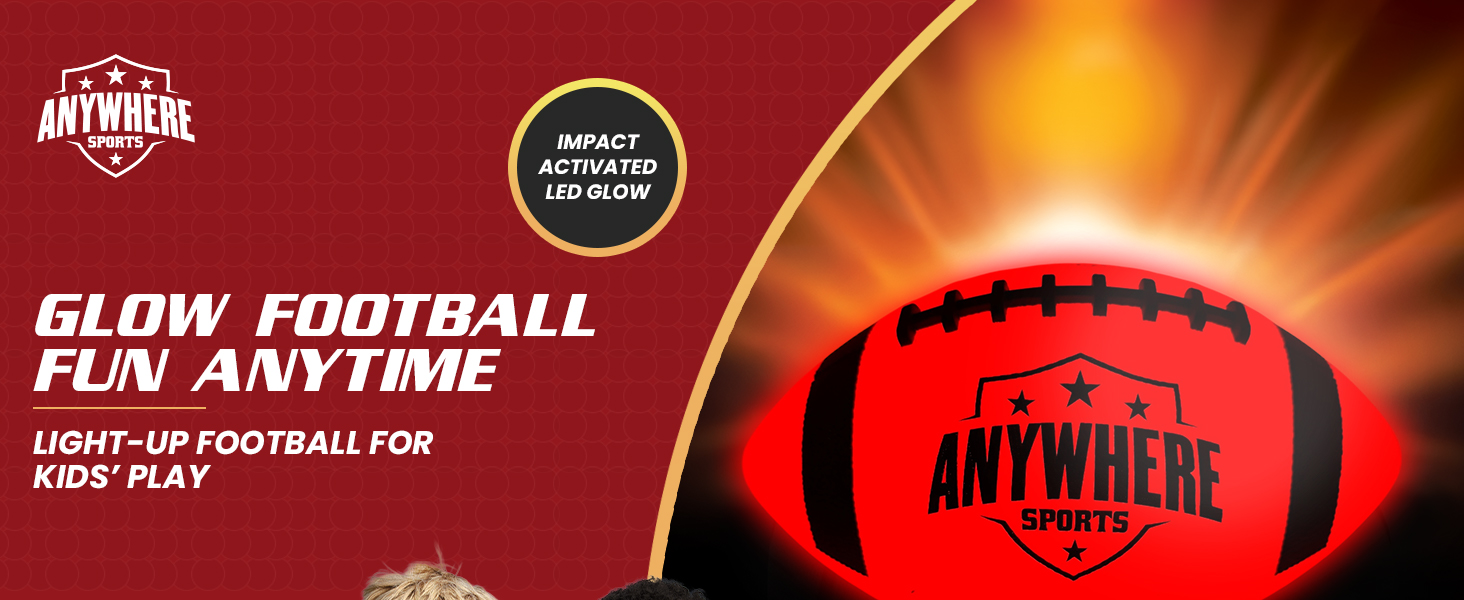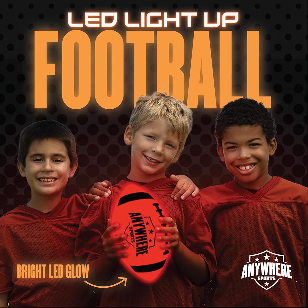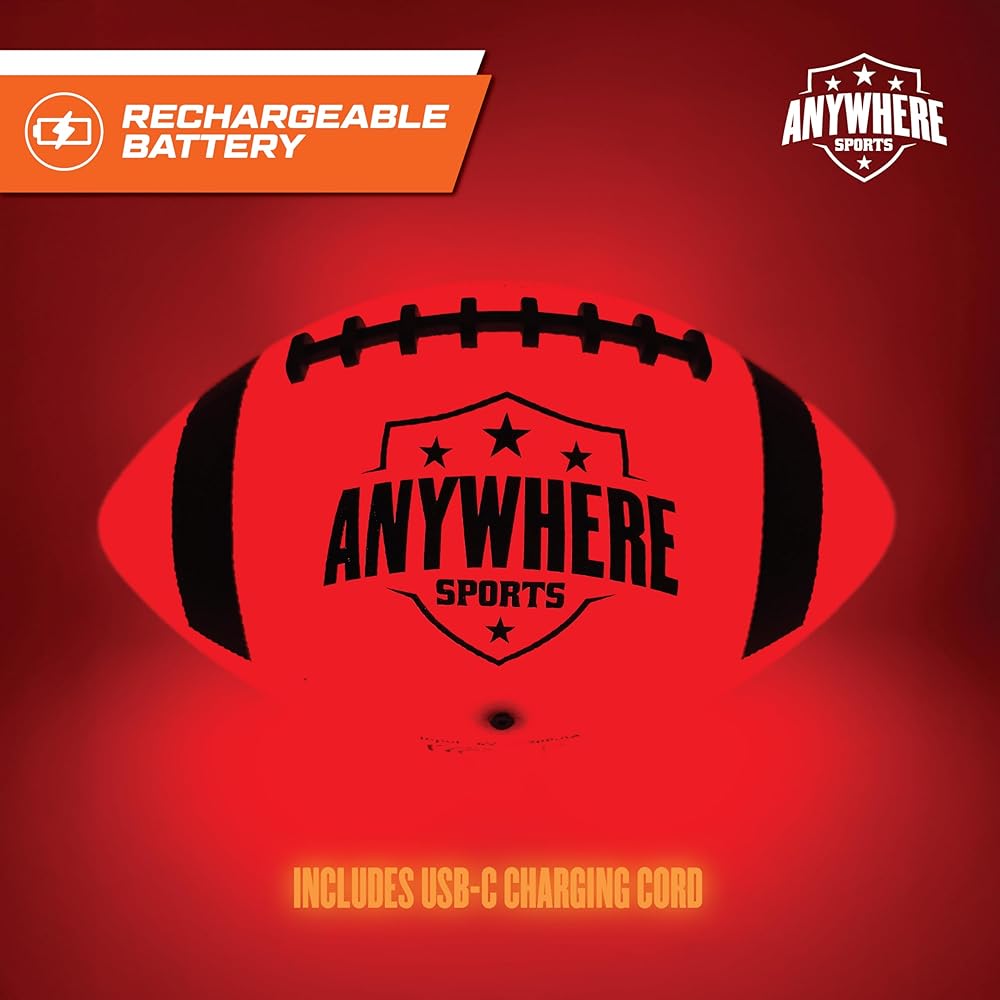 Anywhere Sports Pro Glow Light-Up Football with USB Rechargeable LED Lights, Junior 6 Inch No. 6 Size, Impact Activated Glow, Indoor Outdoor Waterproof Rubber Kids Football