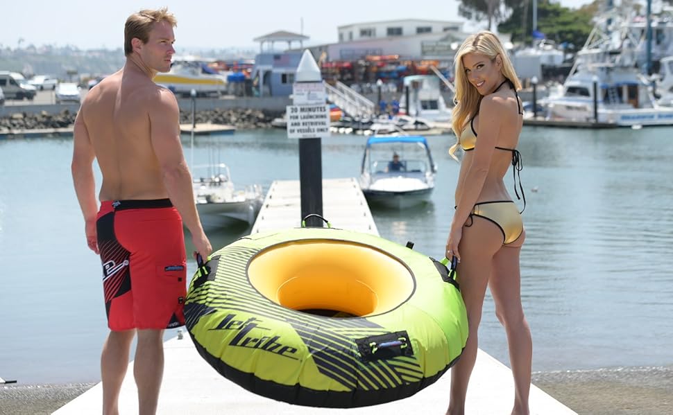 Jettribe Single Rider Inflatable Donut Tube Towable | Designed for Jet Skis or Boats Hyper Green