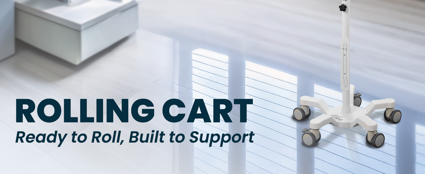 ADJUSTABLE: The VivaComfort rolling stand boasts a telescoping pole with a height range of 31" - 51", accommodating your various requirements.
