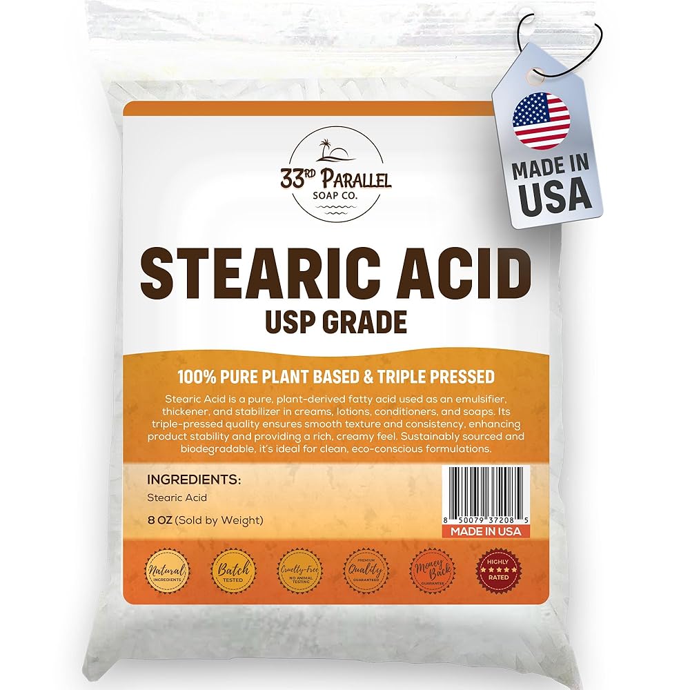 PREMIUM GRADE & SATISFACTION GUARANTEED - 33rd Parallel Soap Co supplies bulk Stearic Acid to premium cosmetic brands and we stand behind the purity and quality of every product we sell. Enjoy our high quality RESEALABLE PACKAGING!
