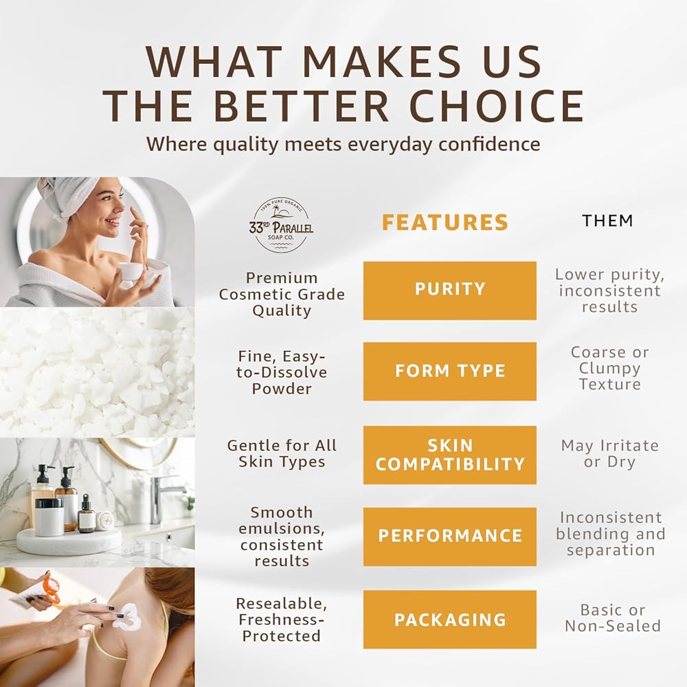 MULTIFUNCTIONAL: Acts as an emulsifier, thickener, and stabilizer—perfect for creams, lotions, soaps, and conditioners that need smooth, consistent texture and performance.