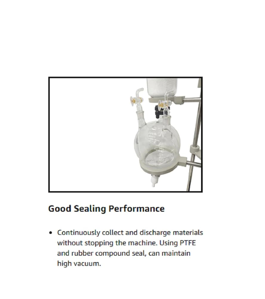 ✈50L Large Capacity & Continuous Operation: 50L large-capacity evaporation flask can handle a large number of samples at one time, reducing the number of experiments and improving work efficiency. The vacuum continuous feeding and discharging design allows continuous operation without breaking the vacuum, avoiding solvent volatilization and sample loss, and adapting to long-term continuous production needs.