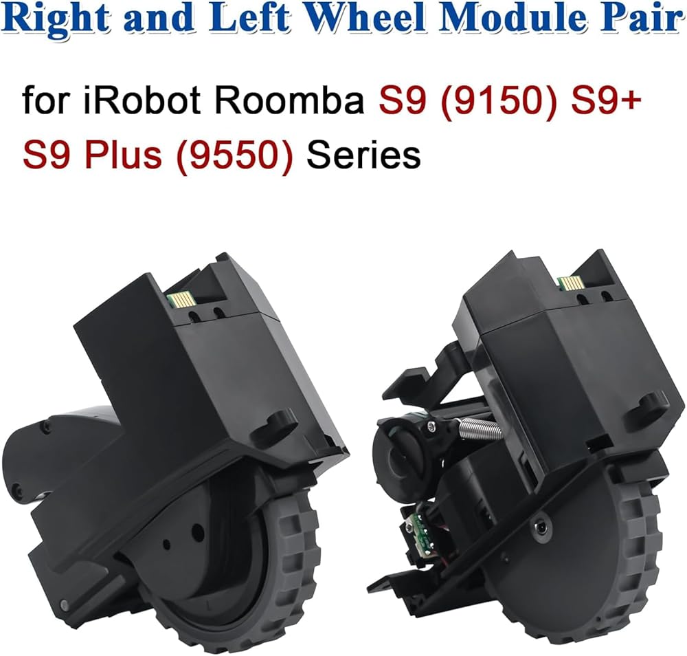 Bring your iRobot Roomba S9/S9+ back on track with this replacement drive wheel module. Designed for a precise fit, it installs in minutes and restores smooth, reliable movement on all floor types. Built with wear-resistant rubber and sturdy plastic for long-lasting durability. Ideal for fixing mobility issues caused by worn-out or damaged wheels.