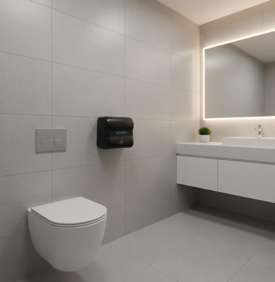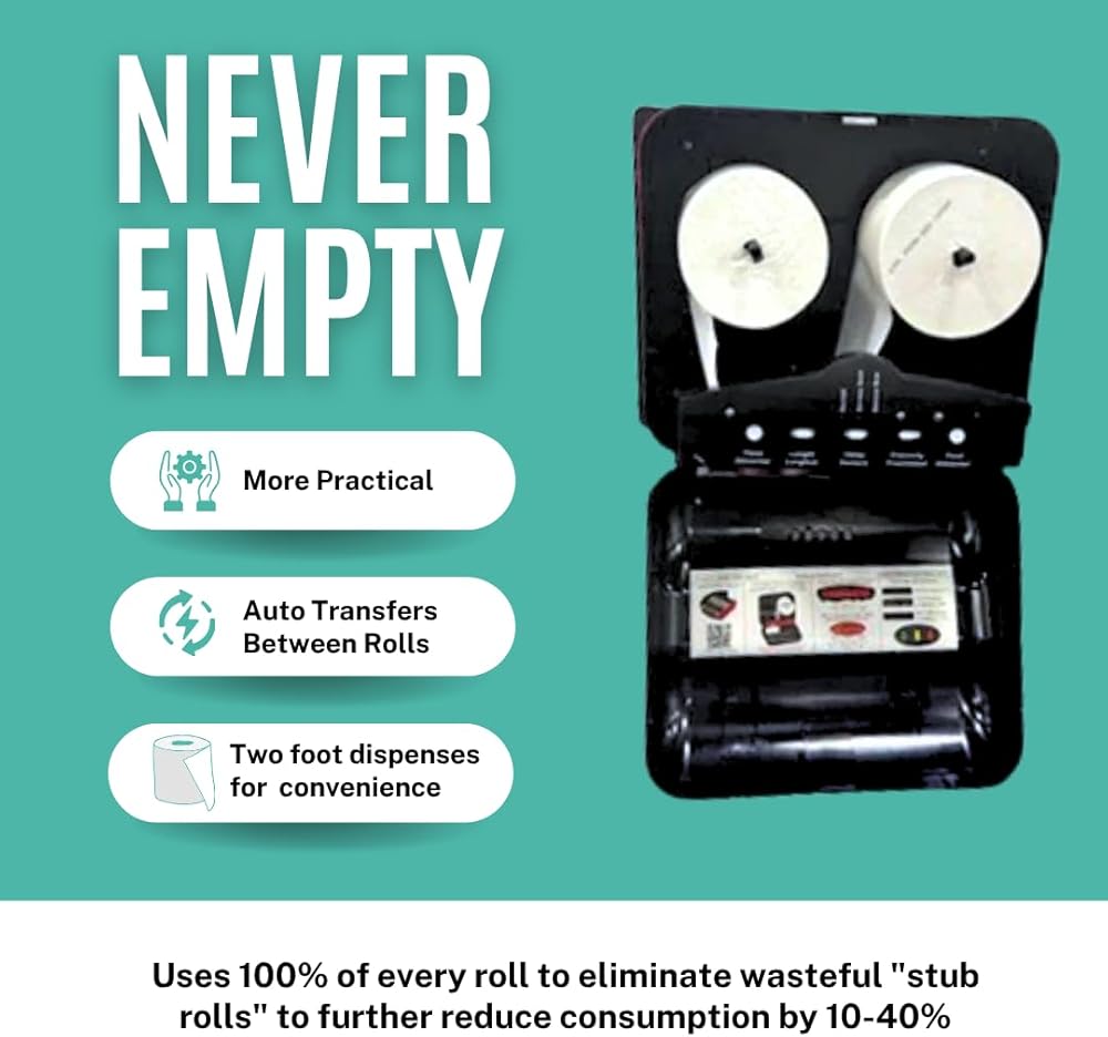 Upgrade your restroom experience with this touchless wall-mounted toilet paper dispenser, designed for commercial and industrial environments where hygiene, efficiency, and cost control matter most. Unlike traditional toilet paper holders, this smart dispenser uses a touchless sensor to dispense controlled amounts of bath tissue, reducing unnecessary waste and limiting surface contact. By dispensing only what users need, it helps minimize paper overuse, lower supply costs, and reduce clogged plumbing — a common issue in high-traffic restrooms. This toilet paper dispenser is compatible with standard two-ply toilet tissue commonly used in offices, healthcare facilities, schools, and industrial buildings. Facility managers can easily transition from traditional dispensers, including wall-mounted toilet paper holders similar in size and function to popular commercial units, without changing paper suppliers. Designed for durability and daily use, the unit includes smart LED indicators that display paper levels and battery status at a glance. This allows custodial teams to service restrooms faster and more efficiently, reducing labor time and unnecessary checks. Ideal for businesses seeking a modern alternative to standard dispensers, this wall-mounted toilet paper dispenser supports cleaner restrooms, improved user experience, and long-term operational savings.