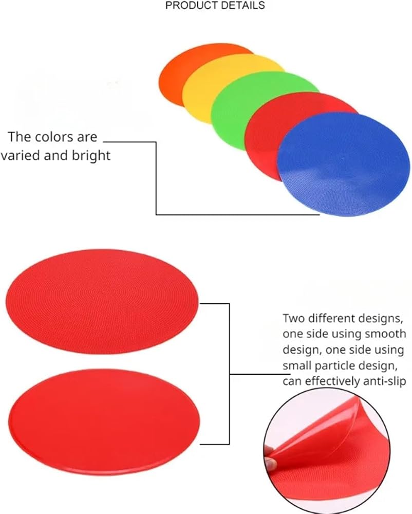 Anti‑Slip Backing Design: These floor markers feature non‑slip dots on the back to keep them firmly in place on smooth surfaces when stepped or run on; compatible with concrete, tile, wood, natural grass and artificial turf