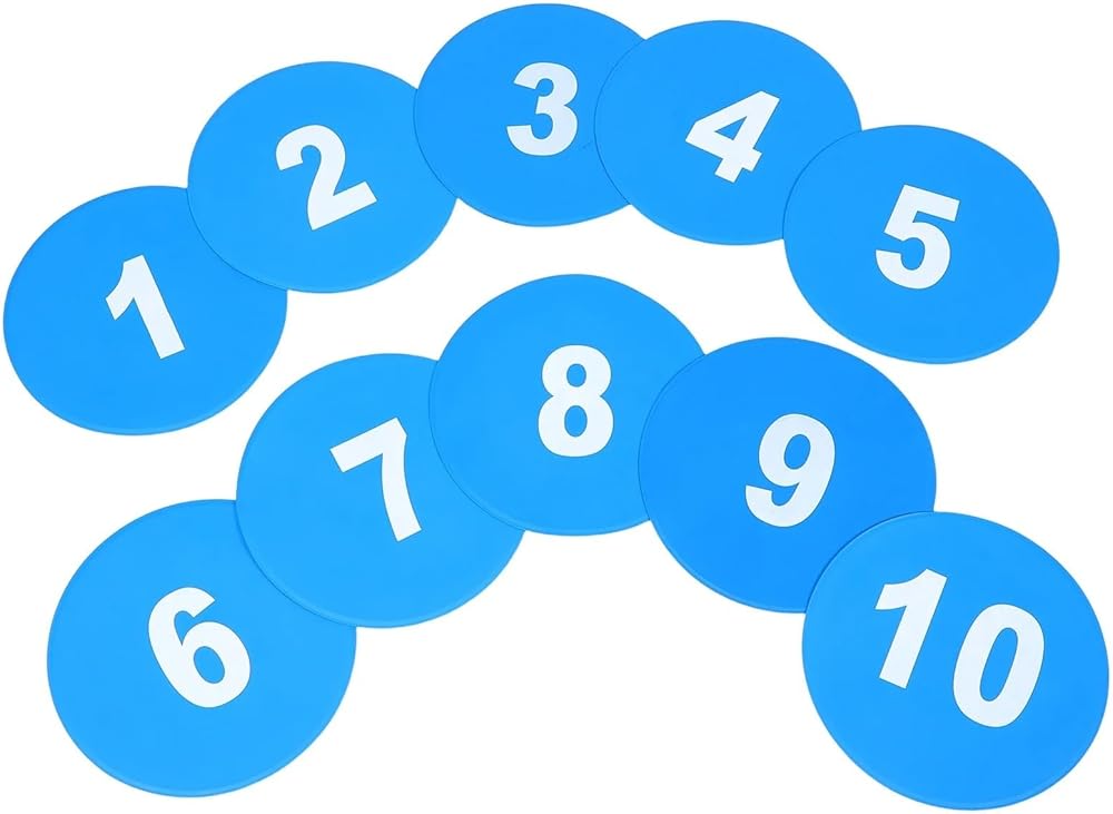 10Pcs Football Field Markers Soccer Discs Flat Cones Numbered Design Antislip Base for Indoor Outdoor Use