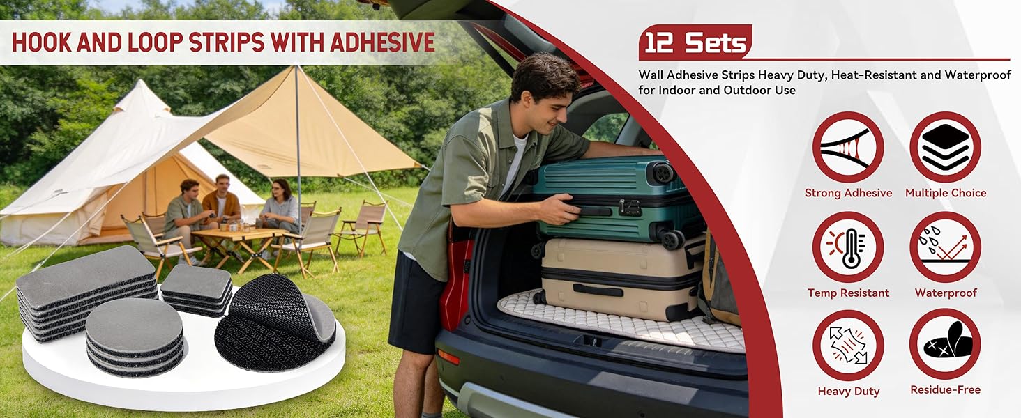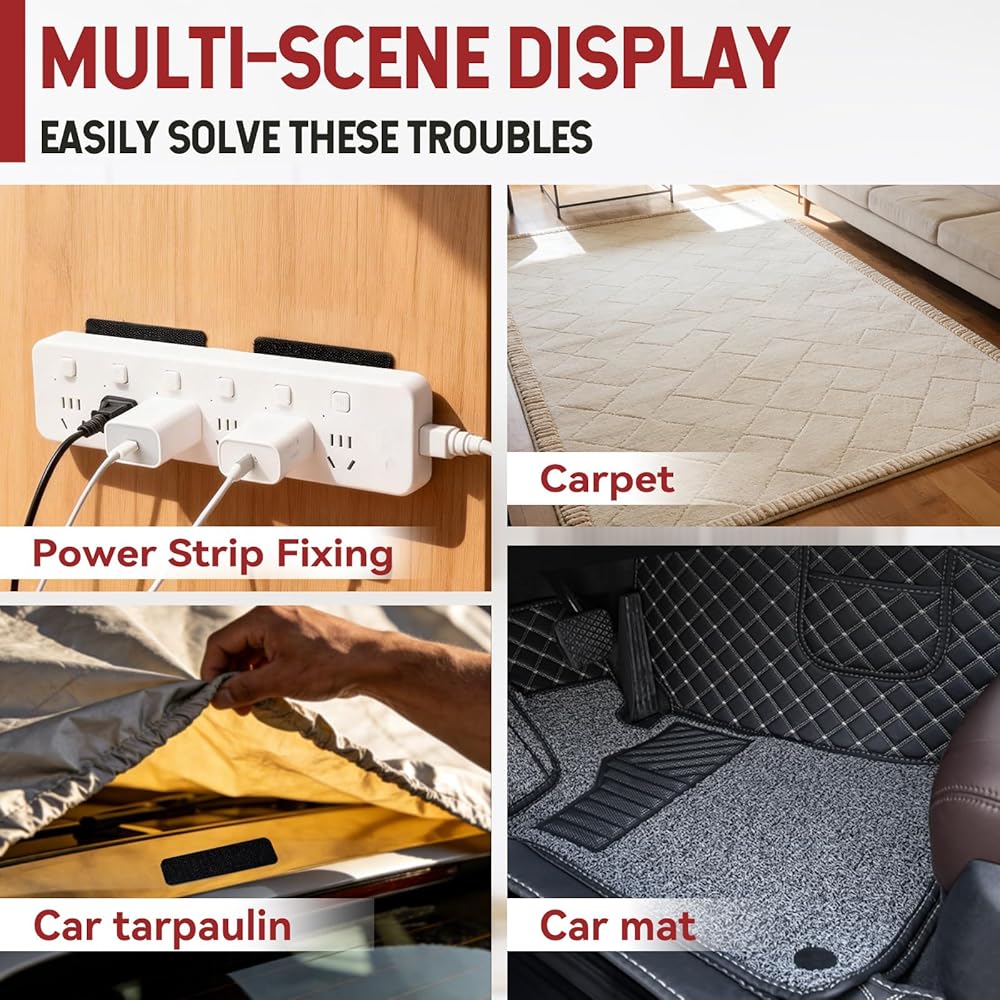 [Wide Application]:Suitable for items that need to be fixed but may sometimes need to be disassembled and replaced. The hook and loop strips is suitable for installing photo frames, handicrafts and decorations, for fixing carpets, sofa cushions, car mats, and for organizing tools, fixing power strips and LED lights. They has good heat resistance and waterproof properties, meeting various installation requirements indoors and outdoors