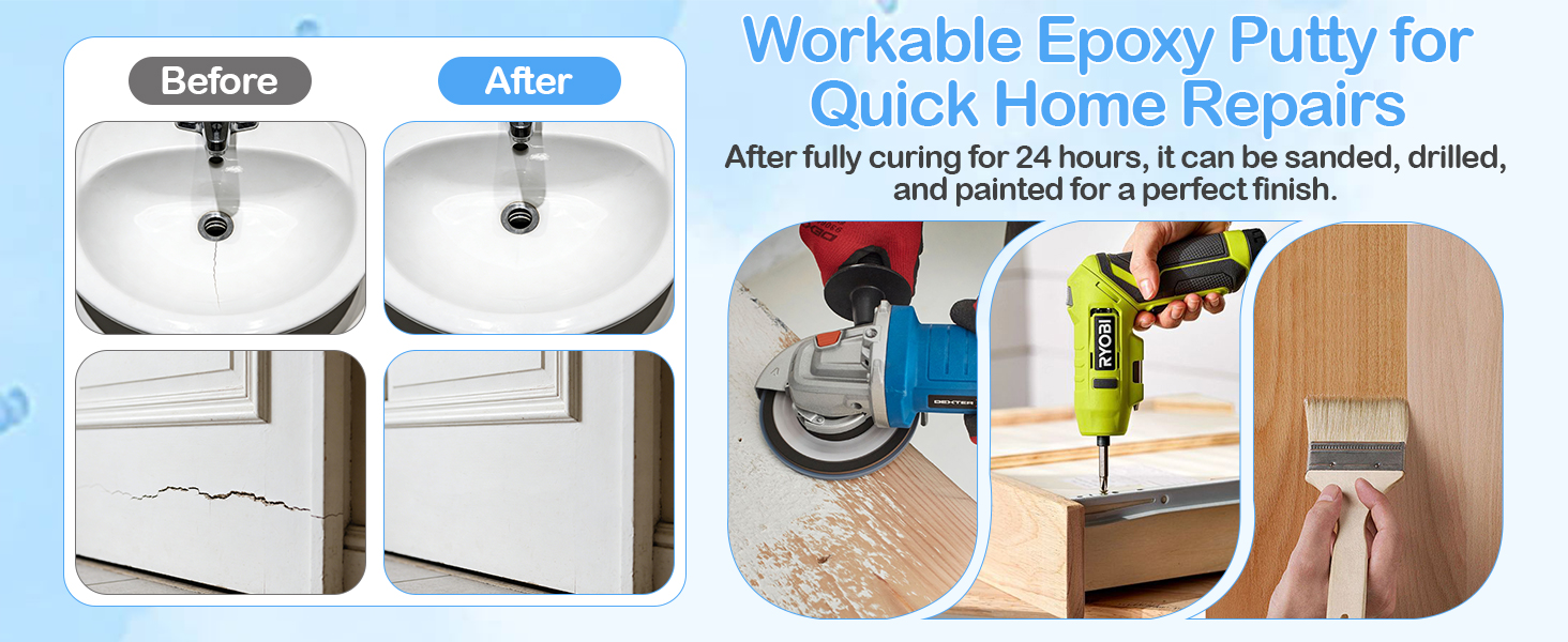 【Versatile Applications】This 2-part epoxy putty is a true all-rounder, capable of fixing leaks, cracks, holes, and uneven surfaces on a vast range of materials including metal, wood, ceramic, plastic, glass, and acrylic. It performs reliably both underwater and above, making it perfect for repairing pool liners, bathtubs, plumbing pipes, faucets, pottery, and wooden furniture. Beyond repairs, it is also ideal for sculpting, modeling, and creative crafting projects—offering professional-grade results at a fraction of the cost.