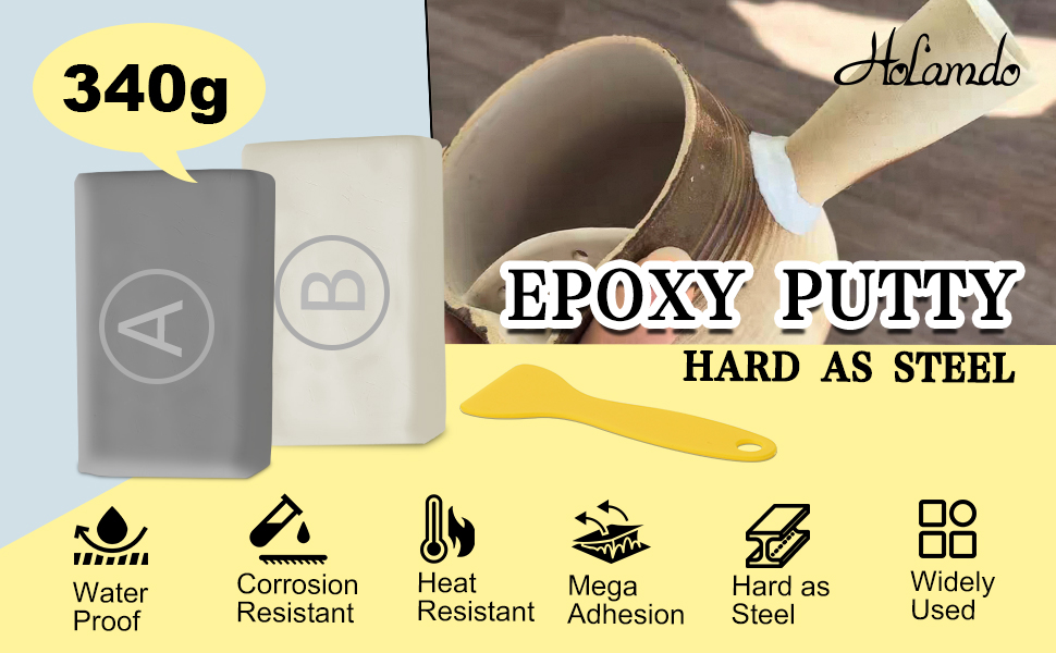 Strongly Bonded AB Filler Putty: High-strength adhesion epoxy putty stick compatible with wood, metal, plastic, ceramic, stone, glass, foam, fiberglass and polymers, and metal filler epoxy putty is ideal for hand-creating, repairing seals, pipes, and pool repairs.