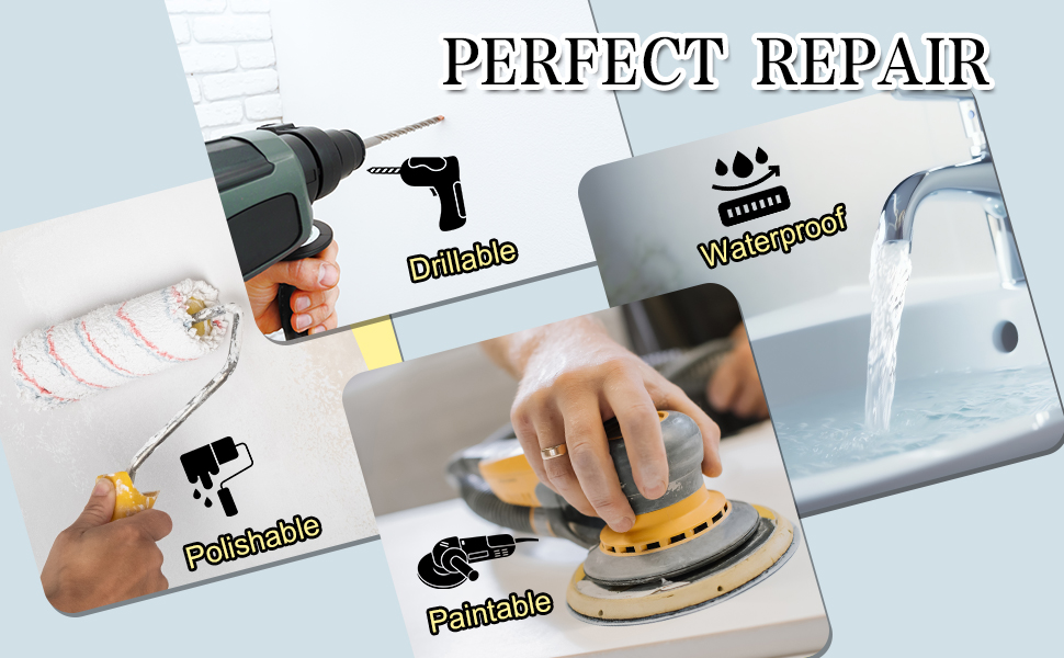 Self-Curing Epoxy Putty: AB white epoxy sculpt clay uses self-curing materials and can be hardened at room temperature without heating or baking. Pool putty does not shrink or crack after curing, is strong and durable, and has impact resistance, heat resistance, and waterproof.