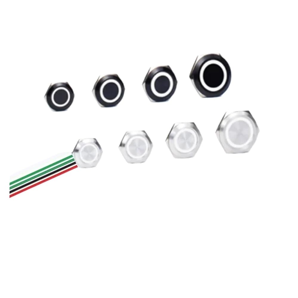 1PCS 19/22/25/30mm Ultra Short LED Light Metal Push Button Switch with Wire 3-6V 12-24V Momentary Reset Waterproof Stainless Steel(White Circle,12-24V,30mm-Balck Shell)