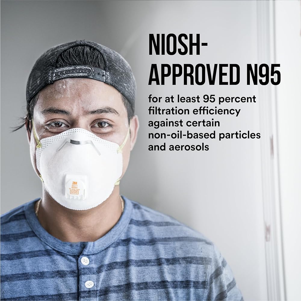 NIOSH-APPROVED N95 for at least 95 percent filtration efficiency against certain non-oil-based particles and aerosols