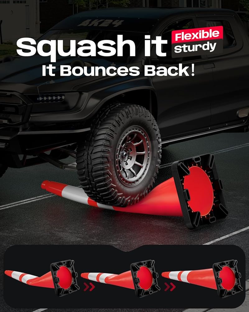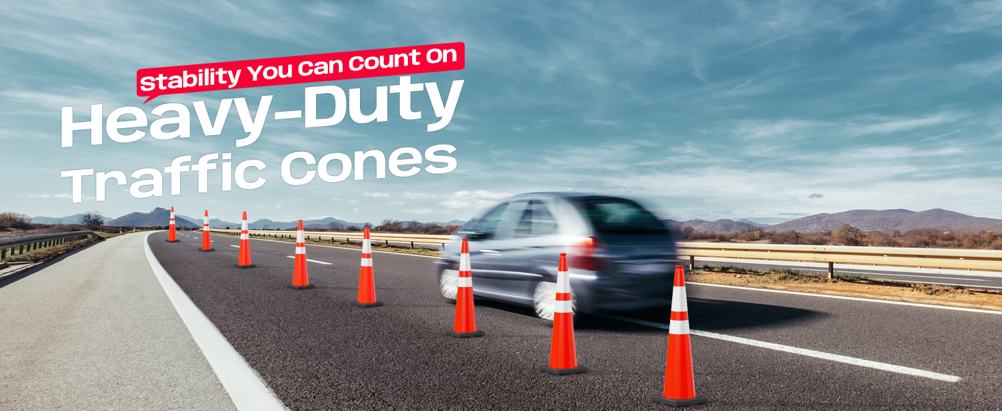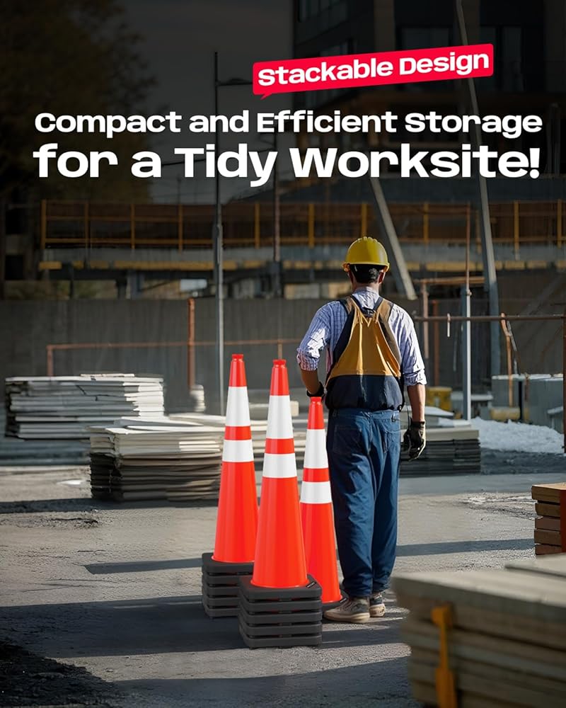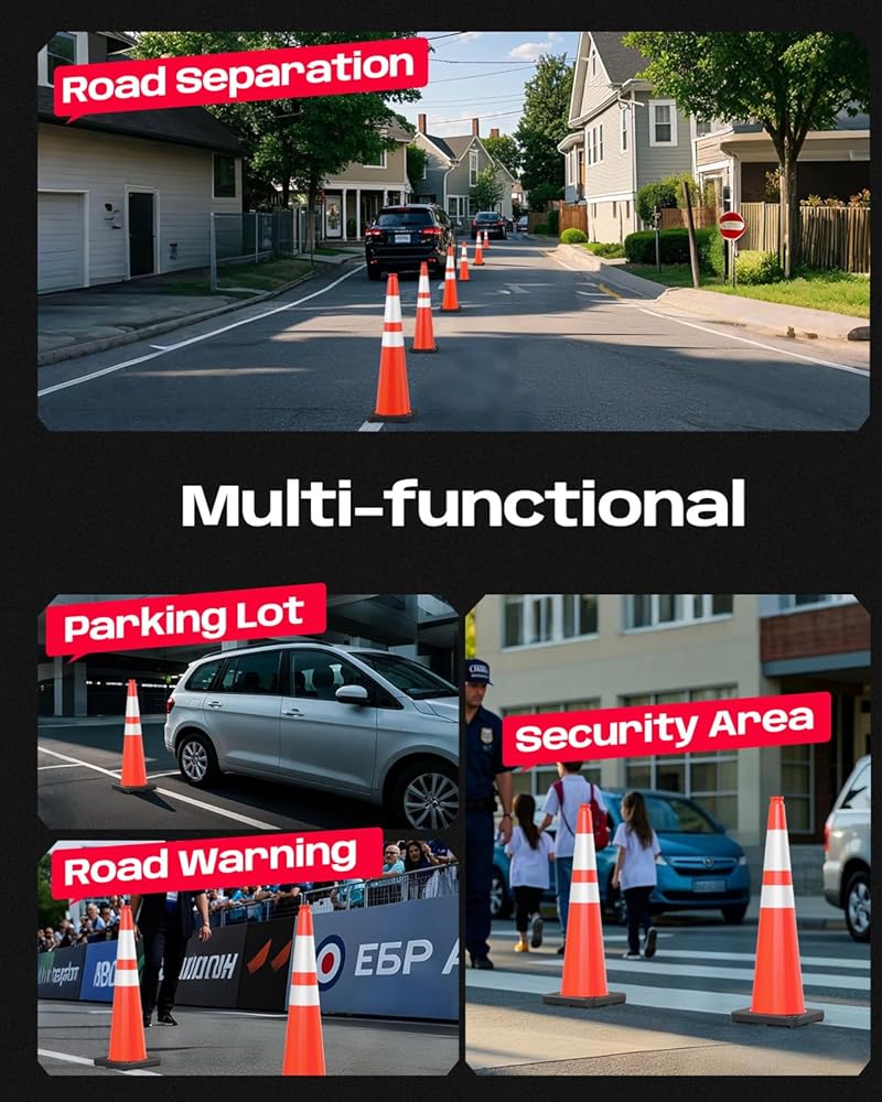 High Visibility: With 2 Wide Reflective Collars, our bright orange 36-inch cones ensure 360-degree visibility and safety - day or night, in darkness, wind, rain, fog, and other poor weather