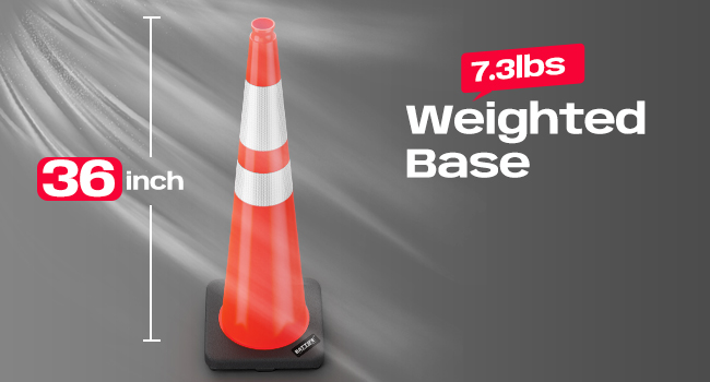 Rubber Heavy Duty Base: With stable structurally durable design, weatherproof to stand against most winds and rain, it stays put on the road to prevent tipping or shifting