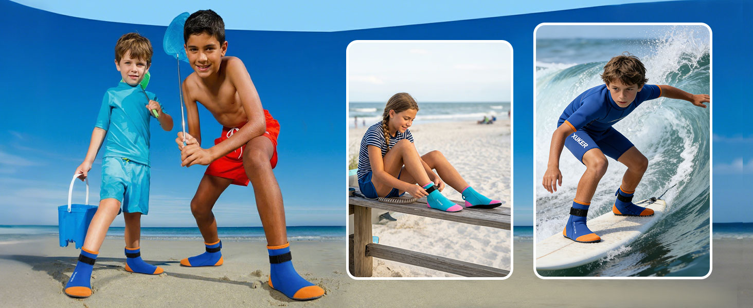 XUKER Kids Neoprene Socks for Boys & Girls | Ideal for all water sports and sand beach activities, a must-have for kids' outdoor water fun.