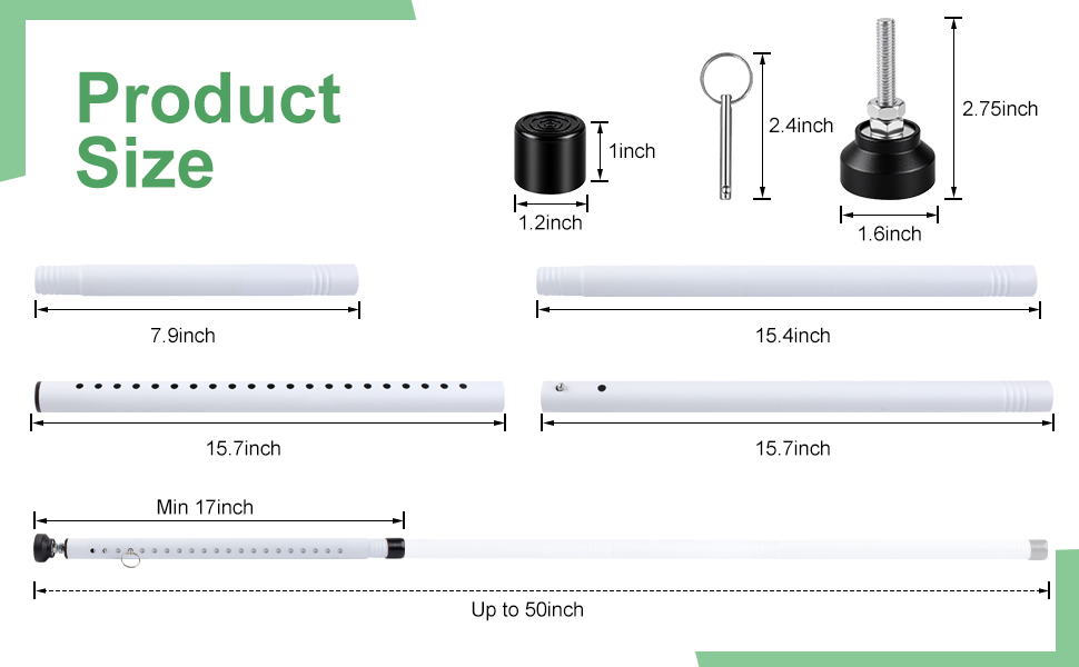 Sturdy Structure with a Beautiful Metal Cotter Pin: The sliding door security bar is made of 1 inch diameter painted metal, which is not easy to damage and is durable.Metal whistles have a dual protective function.