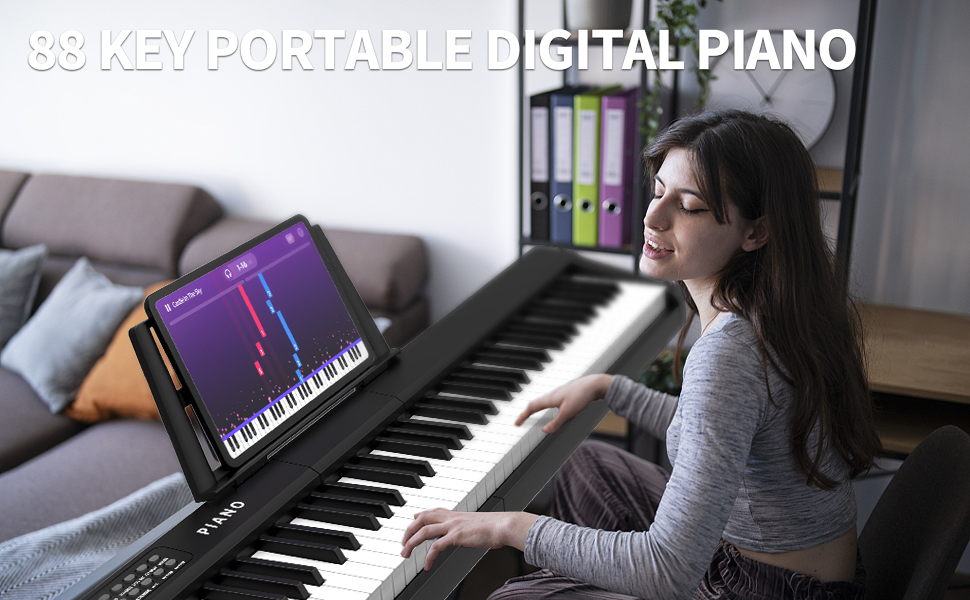 【Weighted Digital Piano】- The digital piano with 88 SEMI-Weighted Keys simulates the real touch of playing the piano. Half-weighted keys reduce the sense of strength than full-weighted keys, for more sensitive touch response to suit different playing styles, suitable for beginners.