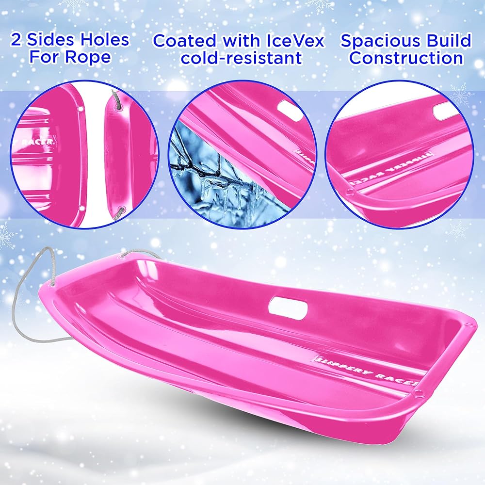 KIDS WINTER FUN: Race all day down snow hills with this slippery racer sprinter toboggan sled; Ideal for kids ages 4 and up to use