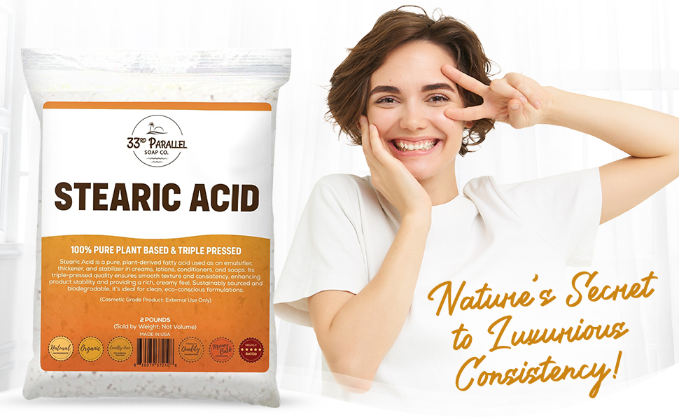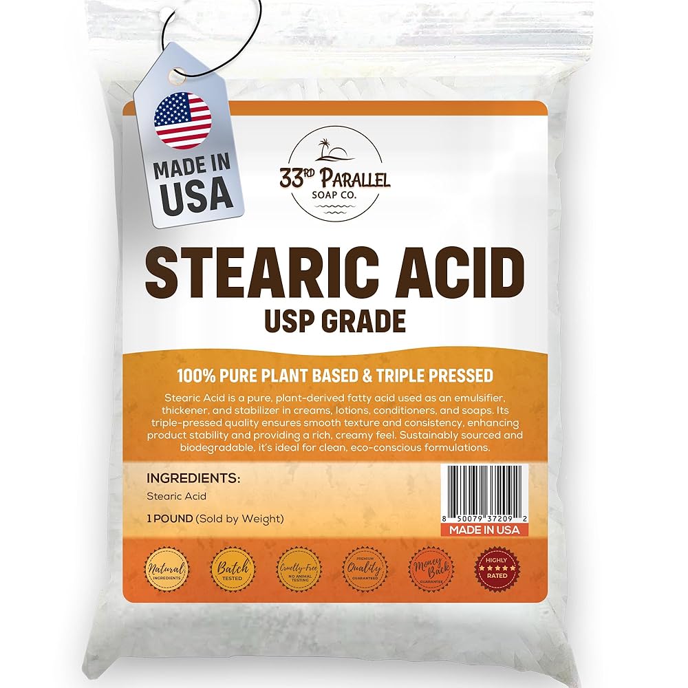 • PREMIUM GRADE & SATISFACTION GUARANTEED - 33rd Parallel Soap Co supplies bulk Stearic Acid to premium cosmetic brands and we stand behind the purity and quality of every product we sell. Enjoy our high quality RESEALABLE PACKAGING!