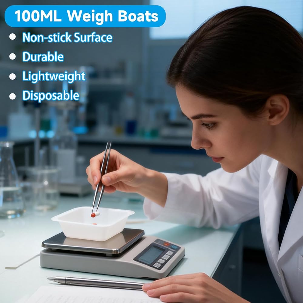 NO-CLING ANTI-STATIC SURFACE: Ensure that all samples are completely recovered. Made from antistatic polystyrene, these weighing boats prevent powders and granules from sticking to the tray, making them perfect for precise supplement measurement and lab analysis