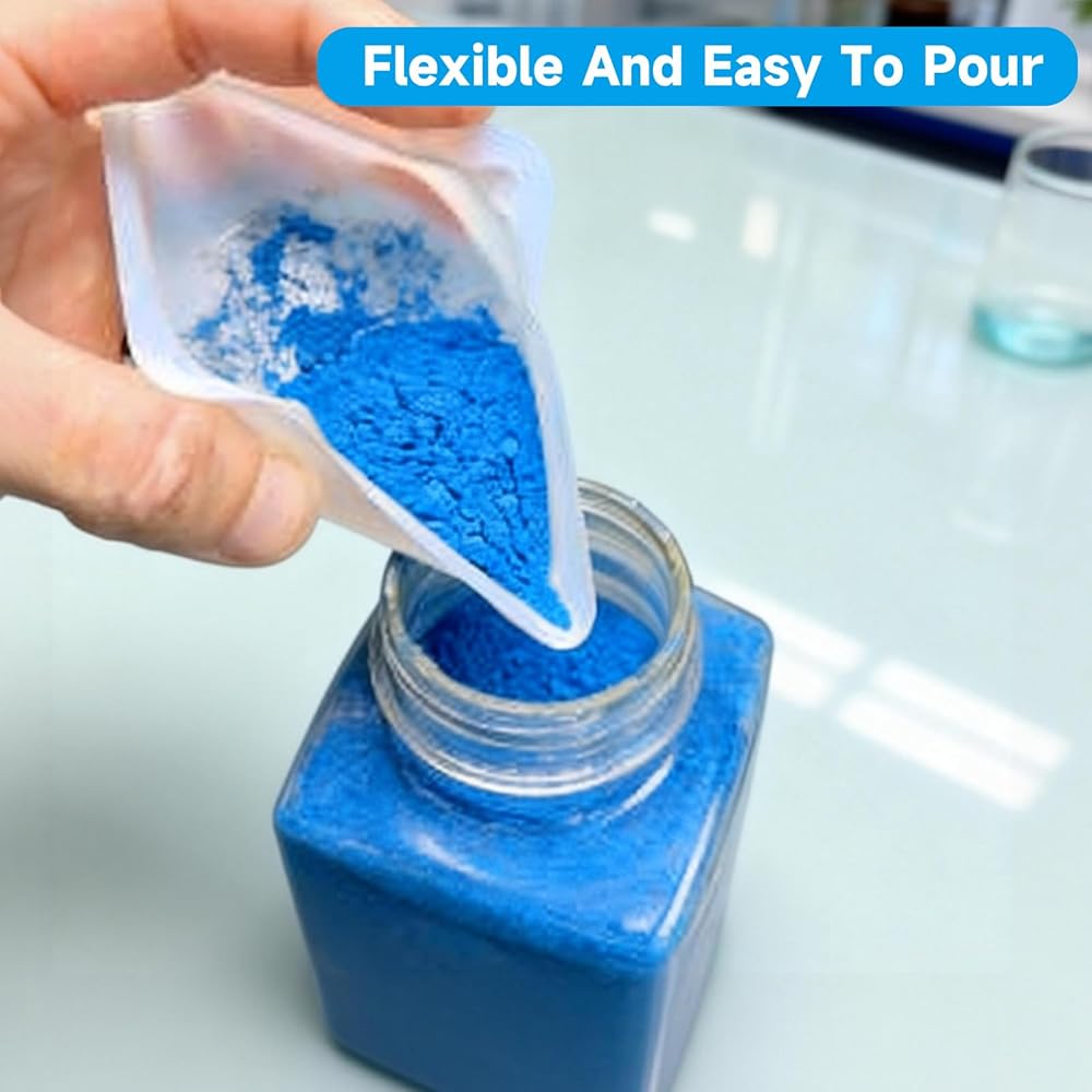 FLEX-TO-POUR DESIGN: Minimize spills and mess. The flexible side walls can be easily squeezed to create a precision pour spout, allowing for controlled transfer of liquids, powders, or tiny beads into capsules, vials, or narrow-neck bottles without the need for a funnel