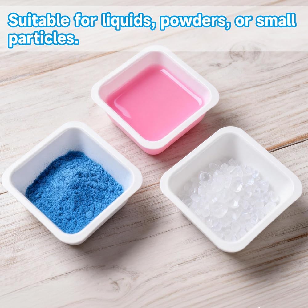 FLAT-BOTTOM STABILITY: Prevent accidental tipping. Each 3.15" x 3.15" square tray features a reinforced flat bottom that sits securely on any digital scale or lab bench. The shallow 0.89" depth ensures easy access for spatulas and micro-scoops