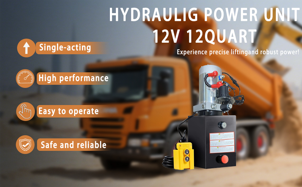 Quick Lifting & Lowering: The hydraulic dump kits are built to start quickly and reliably. The positive and negative ports need to connect with the battery correctly to delivers quick oil output. With double actions to lifting-up and lowering-down, it tackles massive works with high efficiency.