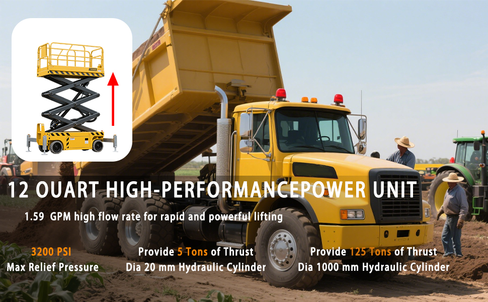 Power Unit Performance: 12 quart metal reservoir; standard duty 12V DC motor; SAE # 6 Port Connector;System Relief Valve is 3200 PSI; 15ft remote pendant for long-distance control.