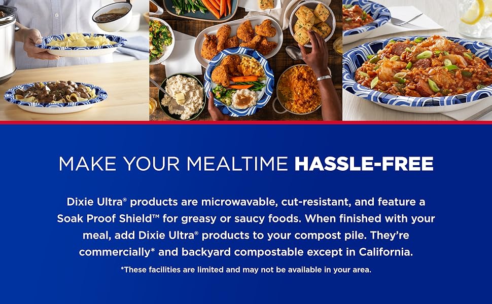 RESPONSIBLY MADE—Dixie products use nearly every part of the tree, which are replenished, and Dixie Ultra Paper Platters are compostable except in California.