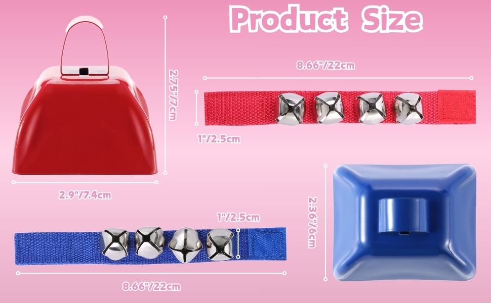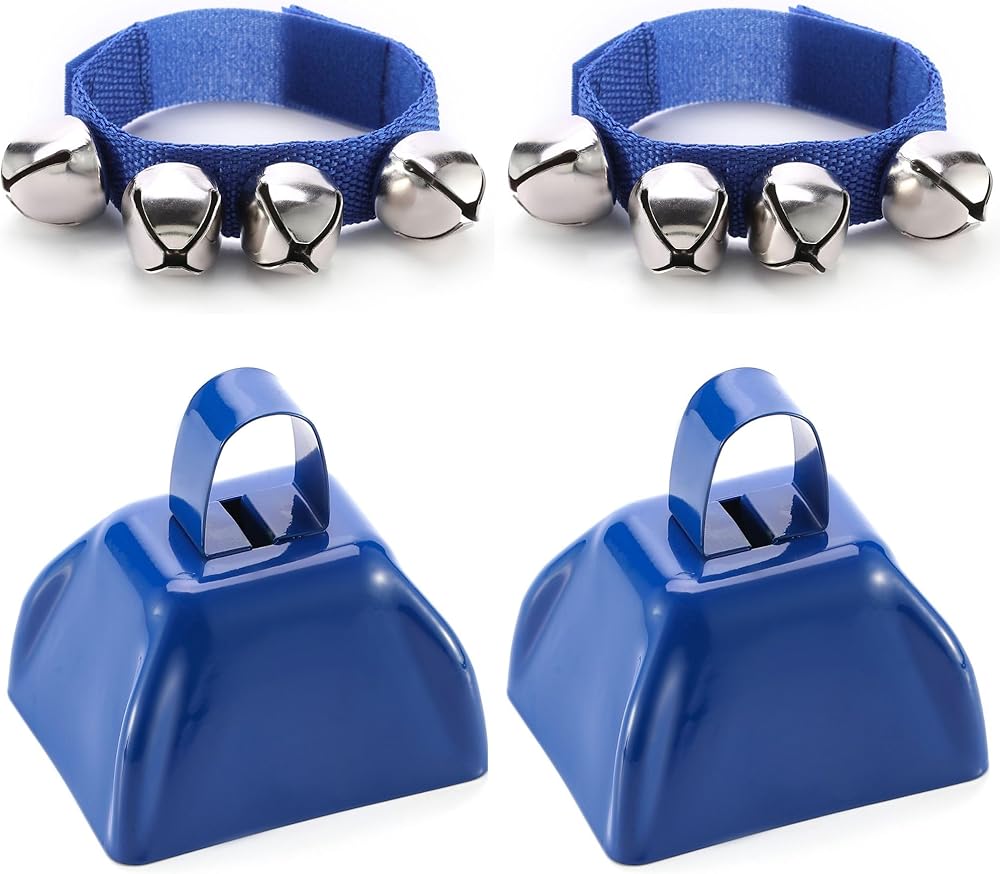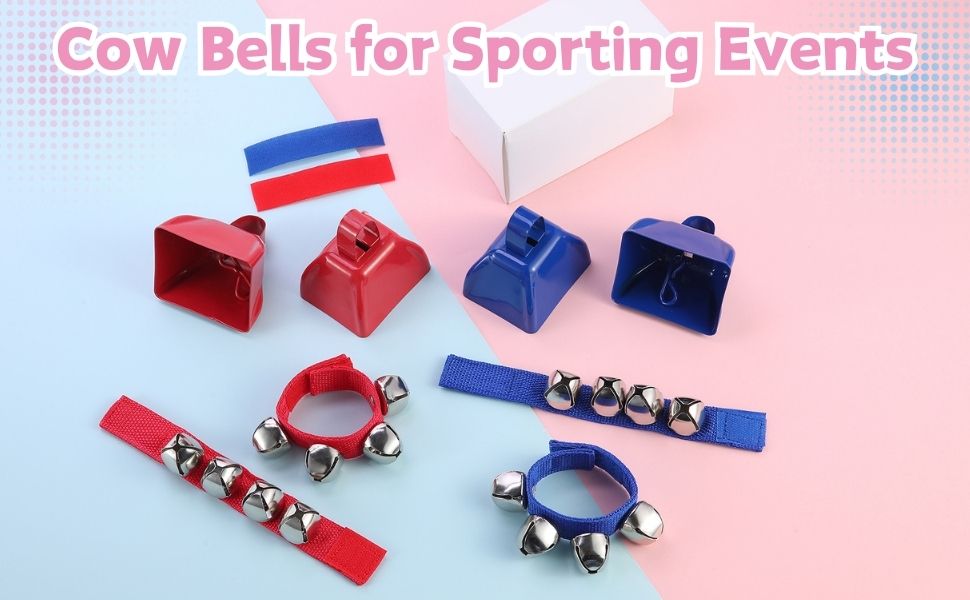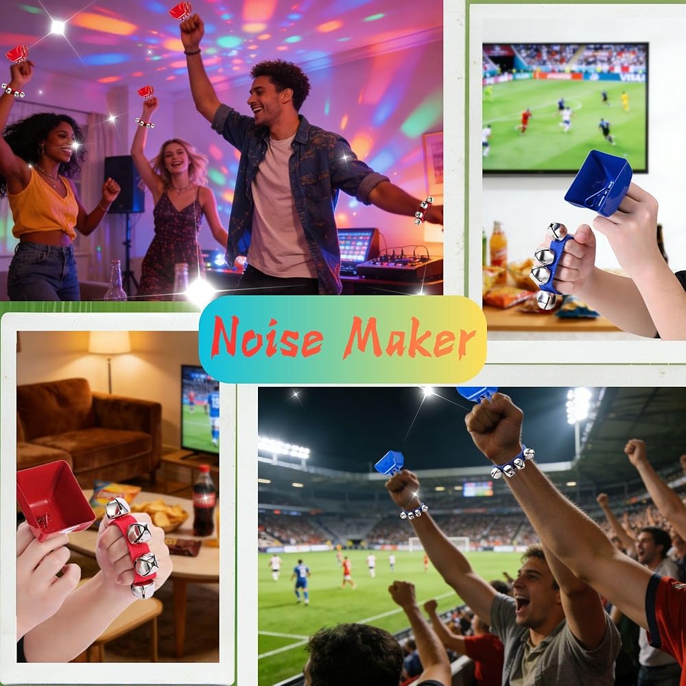 🔔 【Cowbell+Jingle Bell=Ultimate Noise Maker Combo】delivering powerful loud cheering bursts from the cowbell while small wrist bells add continuous crisp sound, giving you hands-free versatility, layered audio impact, and maximum crowd energy.