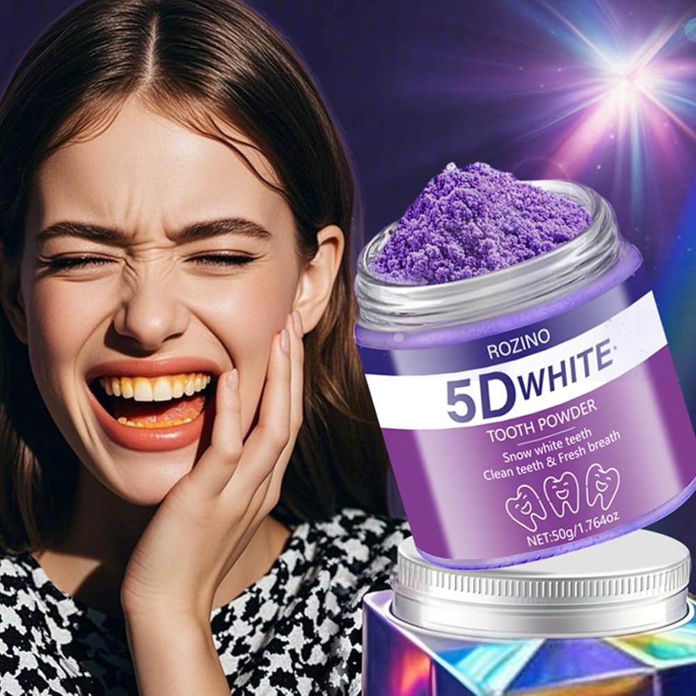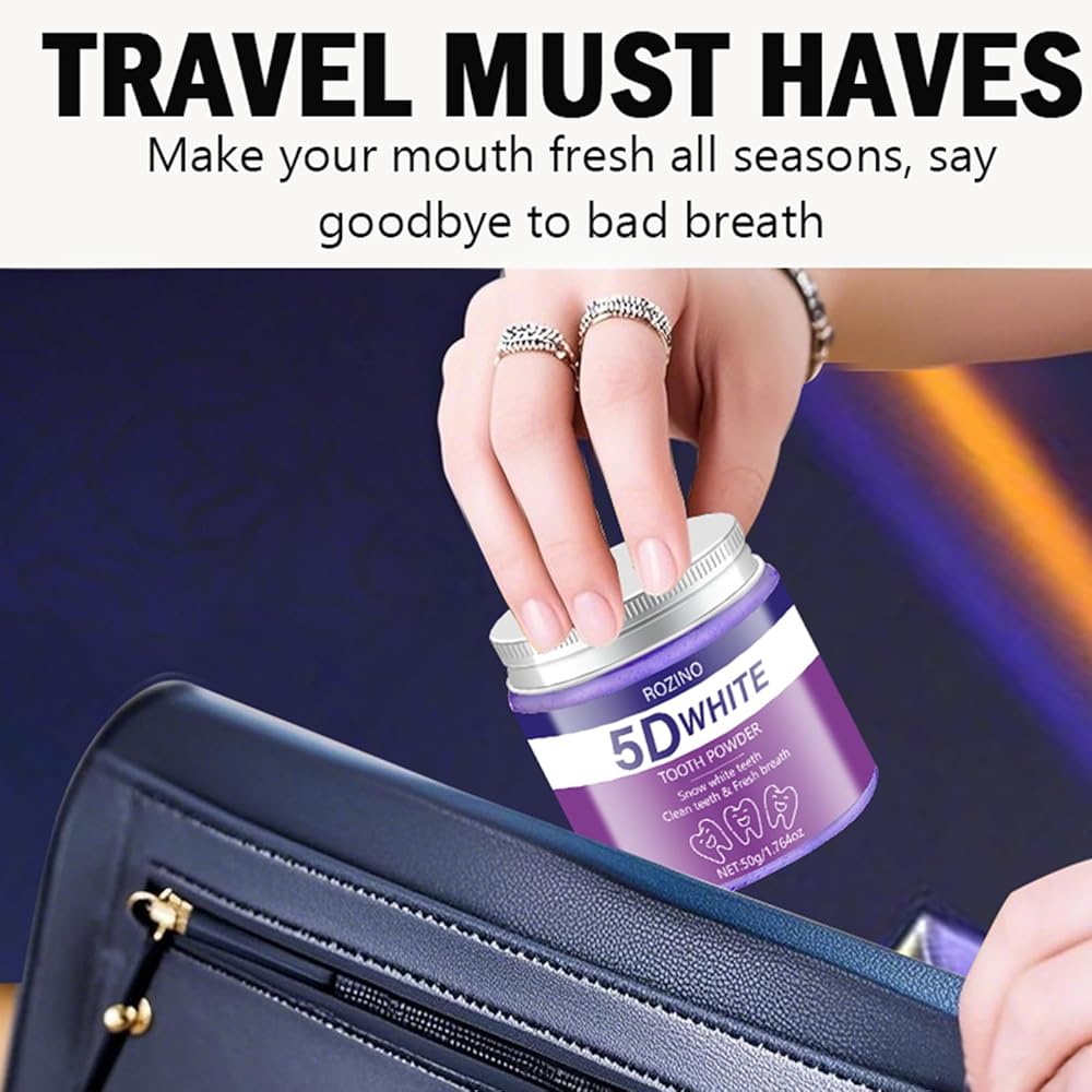 5D White Tooth Powder, 50g/1.764oz, Teeth Whitening to Reduce Stains, Deep Cleaning for Plaque & Residue Removal, Freshens Breath, Easy to Use for Daily Oral Care (1.764OZ)