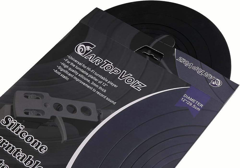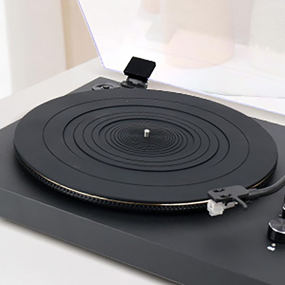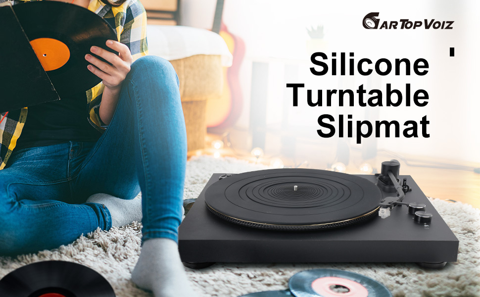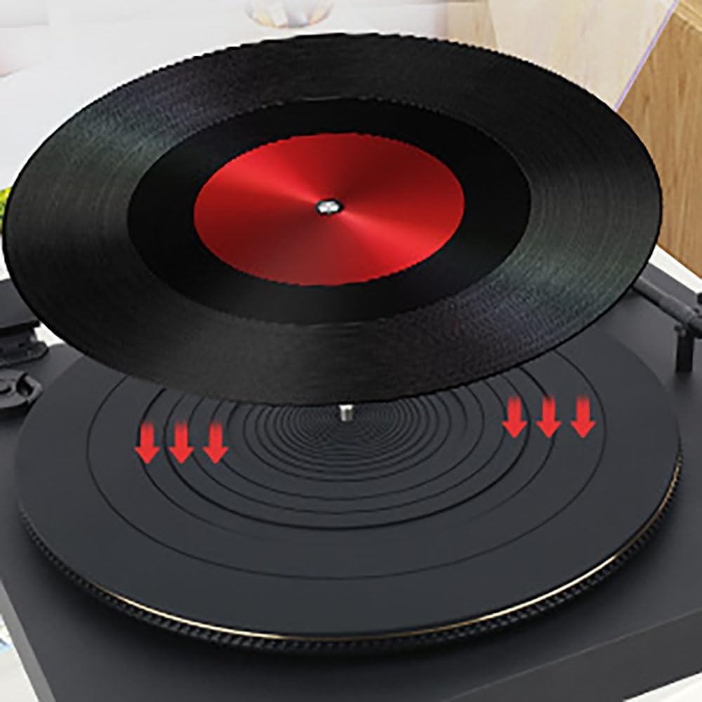 With a rubber mat, incorporating non-slip grooves and label recess to ensure records stay flat on the mat for optimal playback. It's a must record player vinyl accessory!