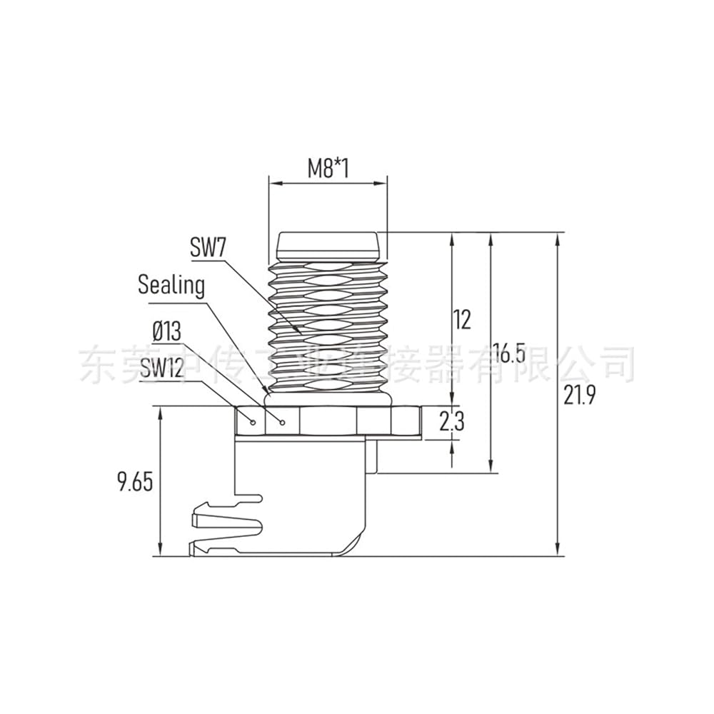 M8 Waterproof Connector 3pin A-Code Male Front Lock PCB Curved pin Shielded Type