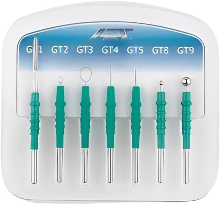 The Comprehensive Set of 7 Advanced Electrode Tips from The Art-E1 Series includes models G1, G2, G3, G4, G5, G8, and G9, offering a versatile selection for various precision-based tasks. Each tip in this set is designed with a specific shape and function, allowing for greater control and adaptability depending on the required application. Manufactured with attention to detail and durability, these tips are crafted from high-grade materials that ensure consistent performance and long-lasting use. Their unique forms cater to different techniques and styles, making them a dependable choice for users who need reliable, consistent contact. Whether you're working in a focused, detail-driven environment or managing routine tasks, the variety in this 7-piece set allows for easy switching between different needs without interruption. The tips are engineered to fit seamlessly with compatible equipment, and their smooth finish promotes easy cleaning and maintenance. This collection is ideal for users who want a complete solution in one package, minimizing the need to purchase individual parts separately. From fine-point precision to broader surface coverage, each tip in the Art-E1 series plays a specific role in helping users achieve consistent results every time.