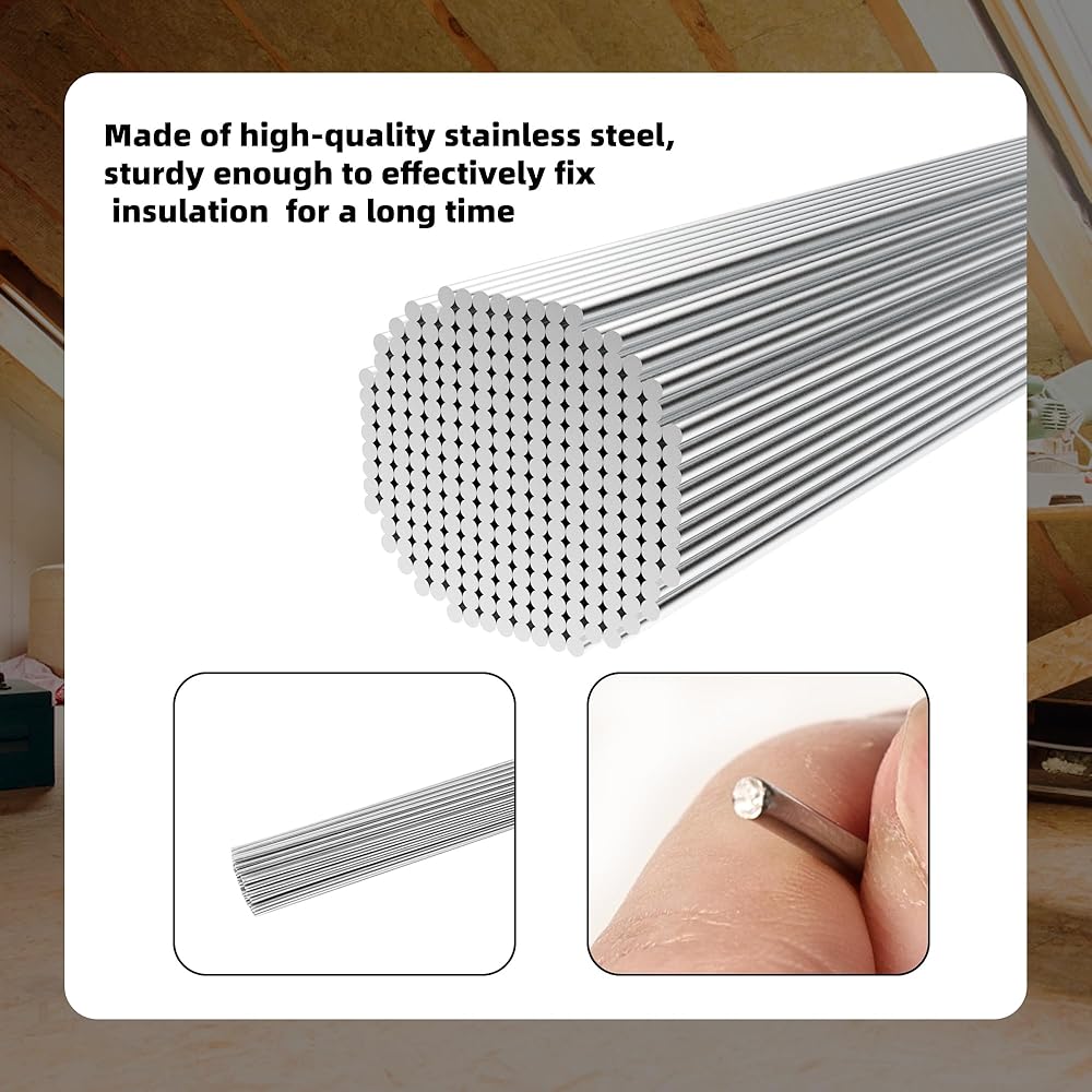 U0U 180 Pcs 16 Inch Insulation Support Wire,Metal Insulation Support Rods,Stainless Steel Metal Insulated Wire for Attic,Garage,Basement Insulation,Ceiling Insulation (180, 16Inch)