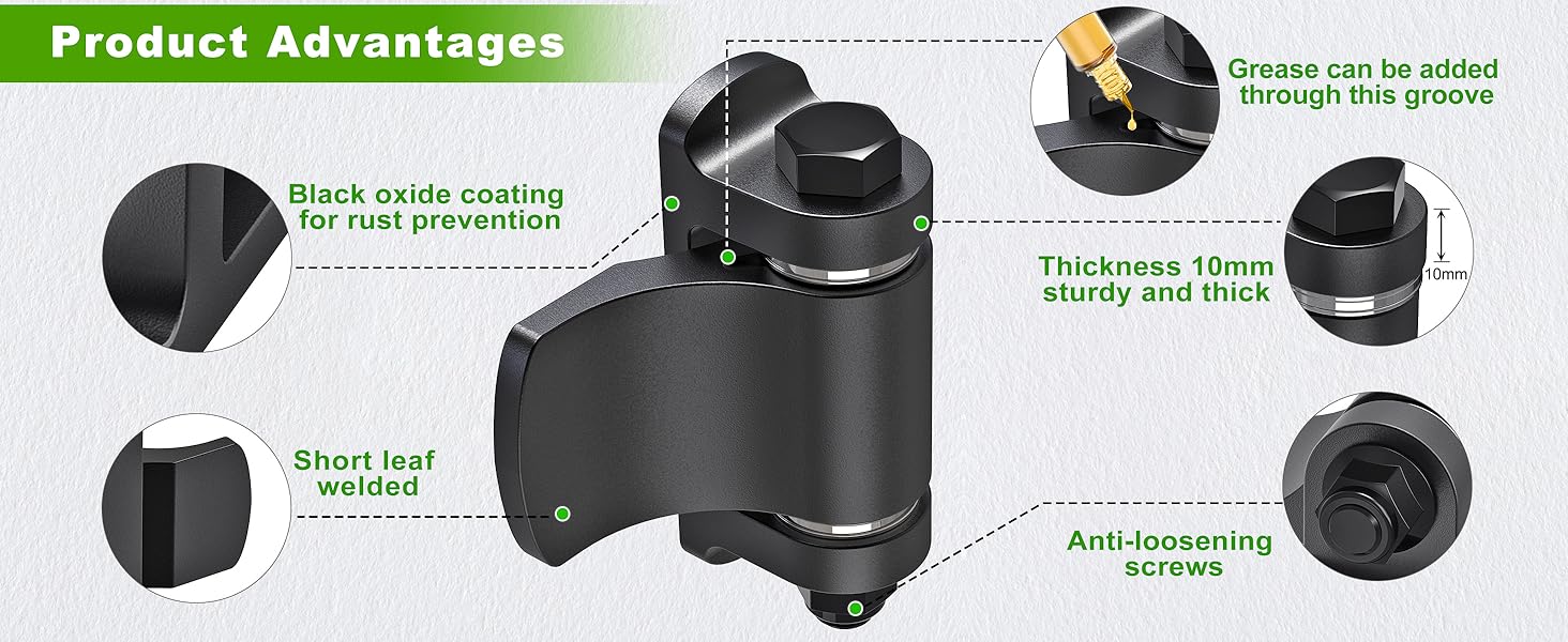 𝑾𝒆𝒍𝒅-𝑹𝒆𝒂𝒅𝒚 𝑫𝒆𝒔𝒊𝒈𝒏 𝒇𝒐𝒓 𝑺𝒕𝒓𝒐𝒏𝒈 𝑩𝒐𝒏𝒅𝒔: Insaga Heavy duty gate hinges made from 6mm thick carbon steel with black oxide finish, ensuring stronger adhesion than standard hinges. No drilling—attach directly to steel gates/fences in minutes.