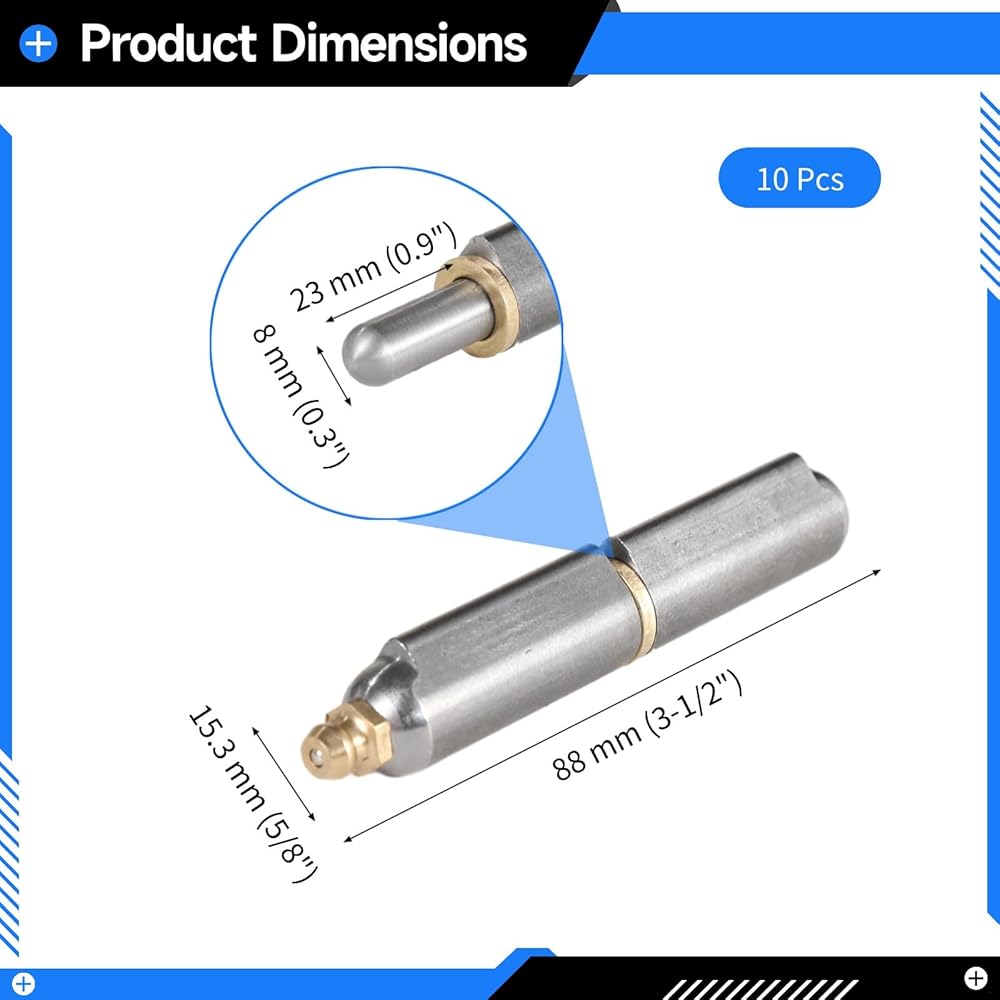 Color: Silver-Gray Material: Iron Size: Size: 15.3 x 88 mm (5/8 x 3-1/2 in) Package Includes: 10 x Weld on Hinge Note: - Please refer to the measurement. Tiny measuring error is allowable in normal range. - There might be a little color difference due to the monitor, camera or other factors, please refer to the physical item.