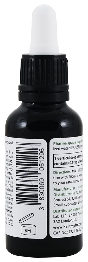 1 vertical drop contains 0.5 mg of Methylene Blue.