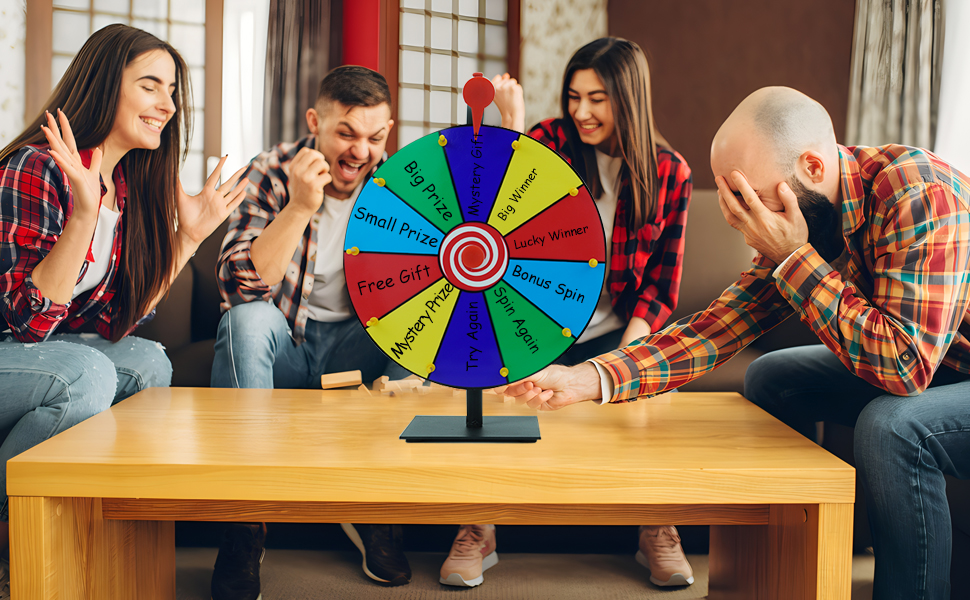 Sturdy & Stable Base – Built with a durable stand and smooth spinner, ensuring steady spins and fair results every time.