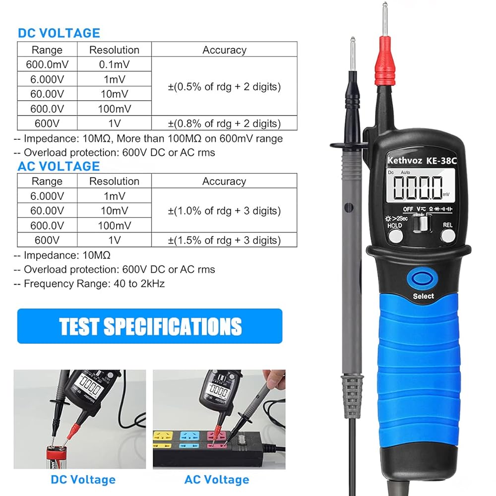 Digital Megohmmeter Insulation Resistance Tester, Kethvoz Auto Range Megohm Meter w/ 500V/1000V/2500V/5000V Testing Voltage, Check 1MΩ~2GΩ Ohm 750VAC for HAVC Motor Winding Ditra Heat Cable