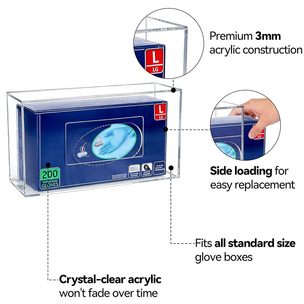 Legrape Glove Box Holder Wall Mount, Acrylic Glove Box Organizer, Disposable Rubber Glove Holder for Medical Lab Kitchen