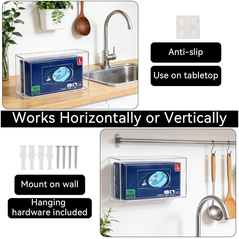 [Dual Installation]: This glove dispenser wall mount can be securely installed on wall using the included screws, or simply placed on a countertop.